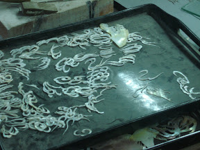 It's amazing, seeing them saw these little shapes freehand, with a little rusty saw. Actually it's a bit like those malays who saw those little acrylic names at pasar malams.