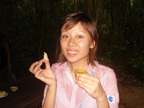 sweating like an idiot and eating tapioca and tea. i wore a long sleeve shirt cos going to temple mah, must show some respect.. not a very wise choice for the tunnels though.
