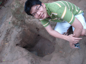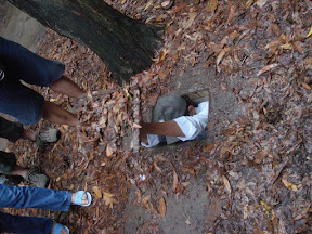 this is a very wide tunnel entrance.. allows easy access for big sized ang mohs who are trying to find the VC soldiers. Turned out that it was laden with traps which have been removed cos some tourists come here on their own to explore the area.