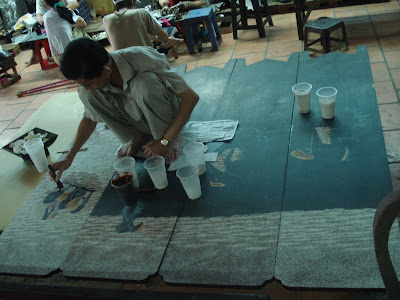 Fook gave us a choice to use a gas station's washroom, or at a factory's washroom which is cleaner. Er.. why bother giving us a choice at all? I suppose it's like, our own fault for walking into a tourist trap cos we chose to. Vietnam is famous for its lacquer ware. The craft factory is run by handicapped people.. There are lots of people who were born deformed after their parents were exposed to harmful herbicides/chemicals in the Vietnam War.
