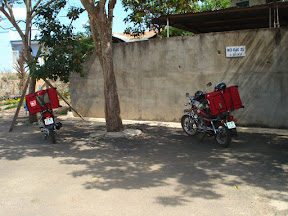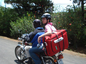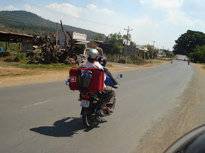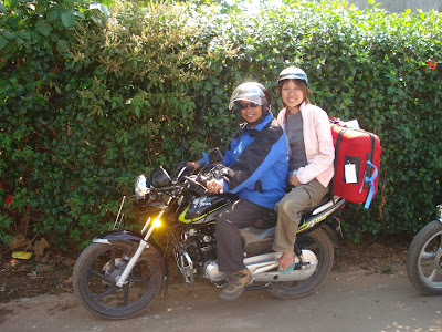 They said that big luggage was no problem.. and they were right. They easily tied our luggages to the back of the bike with strips of tyre rubber. Now we have backrests!