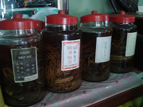 this is freaking gross lah. it's not only filled with snake, there's a freaking bird there on top complete with feathers.. urgh how to drink!