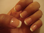 So that's not all. They started painting like, half of each of my fingers with the white polish instead of drawing a nice white tip. wth? i just bit my tongue and let them continue.. next they took a brush, dipped it in nail polish remover and erased away the unwanted parts, before ending with a clear coat of varnish. quite idea lah, just that this way you can't put any base coat beneath the french tips.