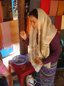 the nice lady sat us down and served us tea.. after which they showed us how they weave patterns into their silk. we were a lil worried that they would start forcing us to buy their stuff but they were pretty gentle and nice.. didn't hardsell us too much. I really wanted to get something but didn't see anything I like. On hindsight luckily i didn't buy anything.. haha.